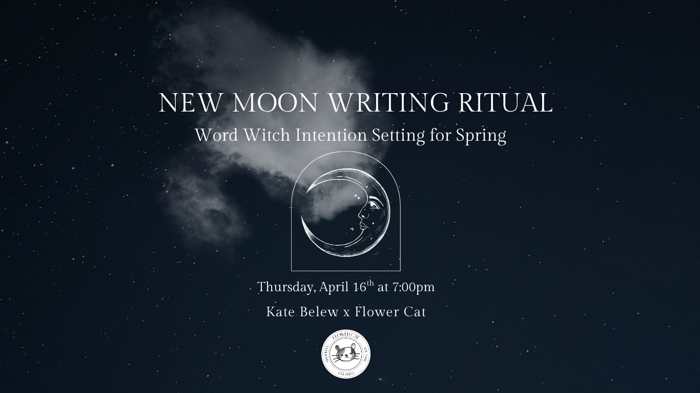 Join me for a 90-minute New Moon Writing Ritual, a Word Witch Intention Setting for Spring on Thursday, April 16th at 7:00pm at Flower Cat in Brooklyn.